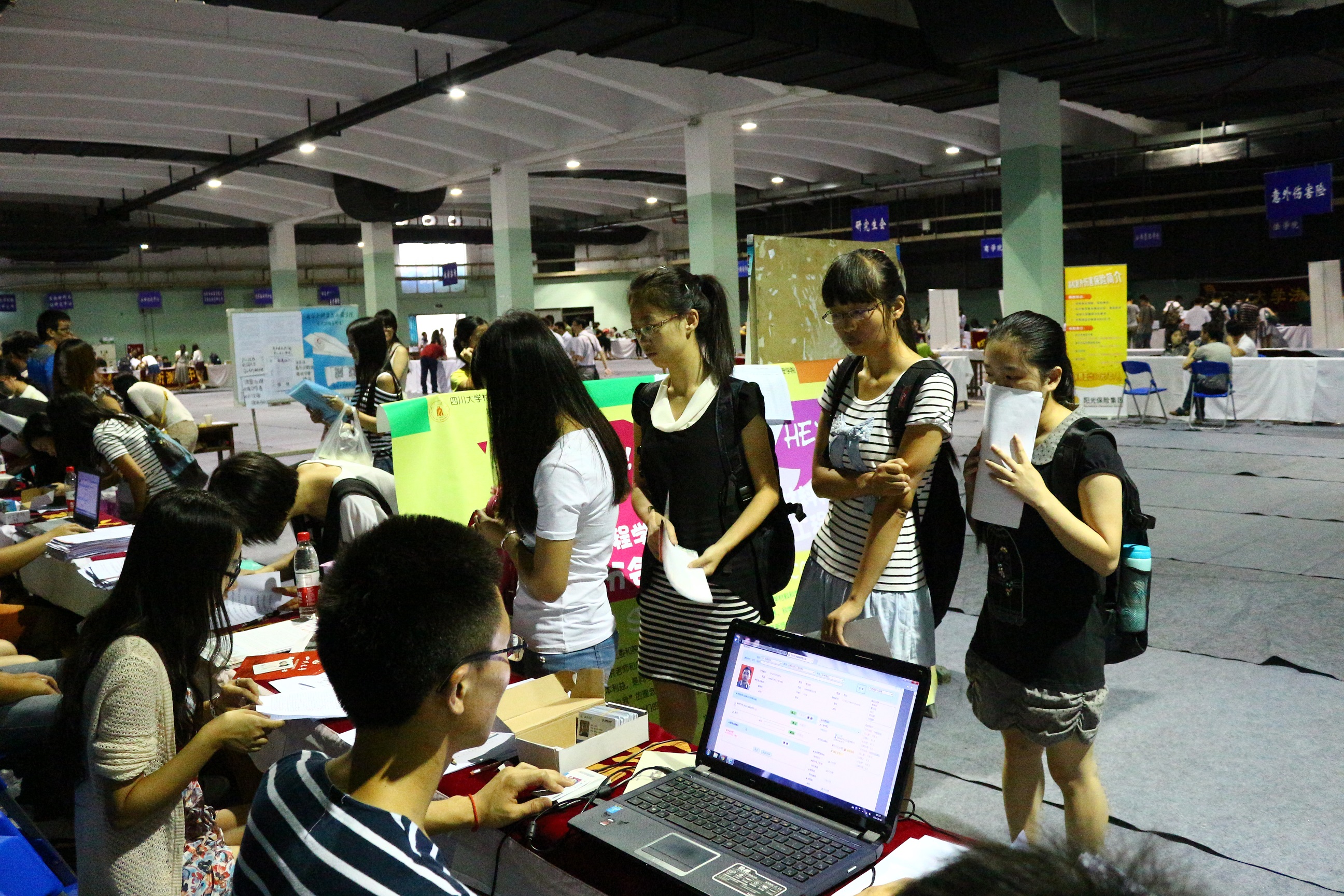 为了顺利完成迎新工作,学院提前部署相关工作,制定迎新安排表,前期顺利完成志愿者招募,保证职责明确、责任到人。随着研究生新生的陆续到来,学院2014级研究生迎新工作正式拉开帷幕。在迎新过程中,工作人员热情地接待新生,详细地为新生办理相关手续,耐心地讲解注意事项,认真地回答新生提出的问题,真诚地帮助有困难的新生,各项工作有条不紊、秩序井然。学生骨干队伍自觉承担起引领服务,充分落实“学长学姐制”,带领新生尽快了解和熟悉校园环境及大学生活,感受川大大家庭的温暖。9月13日下午,迎新工作圆满结束。