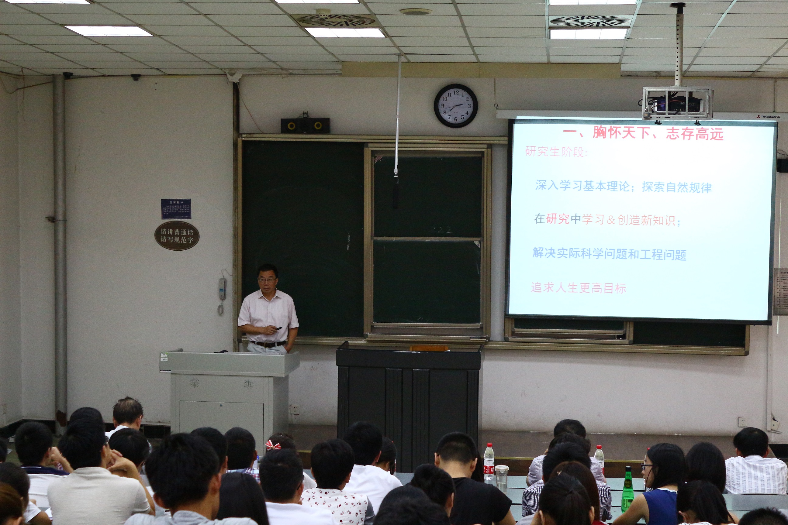 随后,研究生辅导员文铭老师、韩纪梅老师和教务老师胡英老师分别对全体新生在日常管理工作和学籍管理方面做了相关指导。