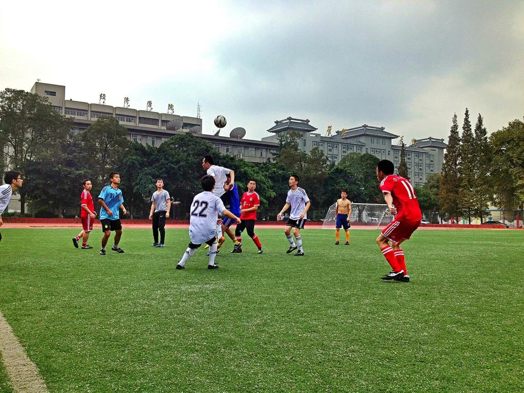 2014年10月29日中午12:30,材料科学与工程学院和电子信息学院的足球健儿们相约在望江校区东区足球场,为我们展开了一场实战足球赛。天上下着细雨,微微有些凉意,可与之相反的是球场上球员们高涨的热情。