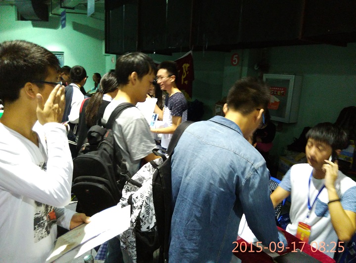 8点半左右,陆陆续续地开始有新生来报到注册,材料学院研分会的各位同学们积极引导新生们进行相应的资料注册,领取;并且还告诉新生们在报到注册后的一系列的需要进行的体检,缴费等相关事宜,最后研分会的各位同学还提醒了新生们关于学院,学校的一些注意事项等。