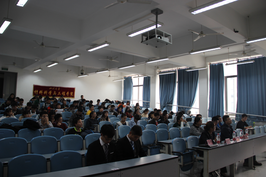 宣讲会于下午两点半正式开始,首先是王志超老师上台代表材料学院的老师致辞,王老师表示希望将此次宣讲会看做一次经验交流会,并与同学们分享了自己06年两次不成熟的创业经历,究其原因在于当时没有创新创业的概念与平台,由昔观今,更加感谢中利公司为川大学子提供的创业平台与资金支持,接着王老师简述了大赛的基本情况并鼓励同学们踊跃参加。随后是中利公司朱丹凤经理上台通过视频为同学们介绍中利腾晖科技有限公司的光伏产业在各行各业的运用,通过朱经理生动精炼的讲解,同学们了解到中利公司是一个聚势合力、创新梦想并具有前瞻思维的国际性公司,目前已与许多高校合作开展创新创业项目。朱经理还着重为同学们介绍了目前正在开展的智能光伏嫁接大农业的创新项目,瞩目成就令同学们惊叹。最后由高鹏学长上台进行赛制讲解并耐心解答了热情高涨的同学们的问题与疑虑。