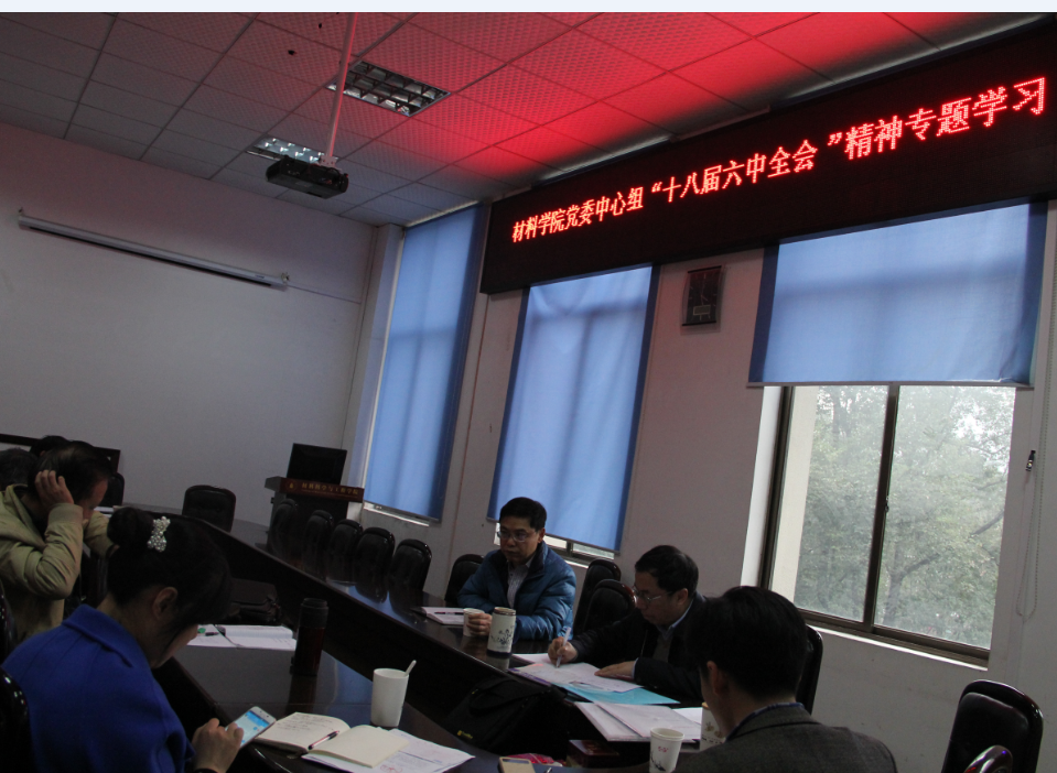 2016年11月21日下午,材料科学与工程学院党委中心组在学院会议室召开了“十八届六中全会”精神专题学习会,全体党委中心组成员参加了学习会。