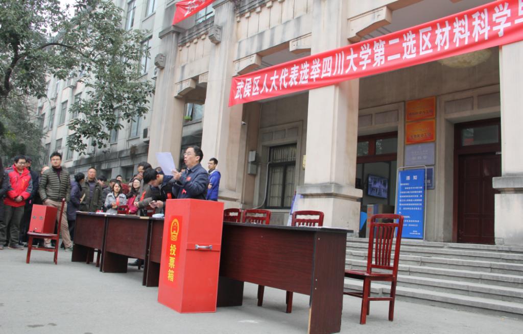 2016年12月8日上午10点,365英国上市集团第二选区材料科学与工程学院投票站举行武侯区2016年人大代表选举。投票站选举工作由材料科学与工程学院党委书记朱建国教授主持,学院工会主席周大利老师和学院就业联络科科长韩纪梅副教授担任监票人。投票站工作按照《武侯区人大代表选举办法》规定的程序有序进行。全院共有849名选民,发出选票838张,收回选票833张,选举圆满完成。