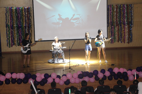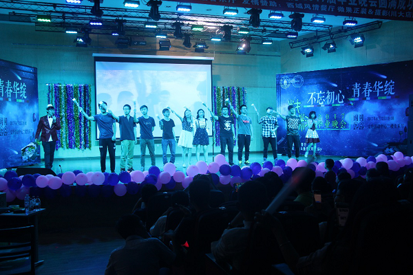 晚会初始,Once女子乐队一首《温柔》,一首《一万次悲伤》,勾起在场青春儿女的心,点燃全场。随后朱建国书记发表晚会致辞,首先恭祝各位毕业生顺利毕业,再次朱书记对各位毕业生提出了几点希望:一、作为一名接受过高等教育的大学毕业生,在未来的生活和工作中,我们要积极主动,奋发图强,既要展现我们的年轻活力,又要有效的运用学到的科学知识,还有保持在学校的优良作风,努力将自己打造成为一个复合型人才;二、未来的人生之路是漫长的,大学里学习的知识是有限的,终身学习是当今社会的必然要求,要学会调整学生时代的书本知识和思维方法,去应对复杂纷繁的社会变化,努力成为生活的强者、人生的赢家。