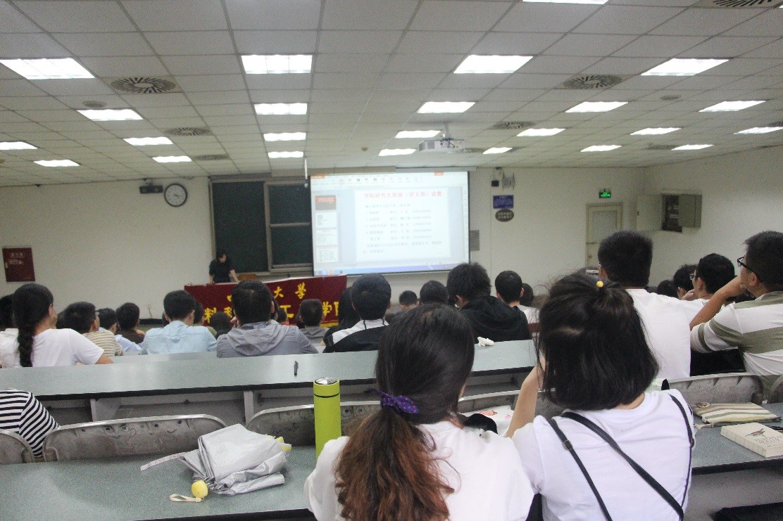 9月15日下午4点,材料学院2017级硕博新生学前教育在基础教学楼C104举行。参会人员有硕士辅导员王娇老师、学籍管理老师胡英、曾栌贤、以及17级全体研究生。