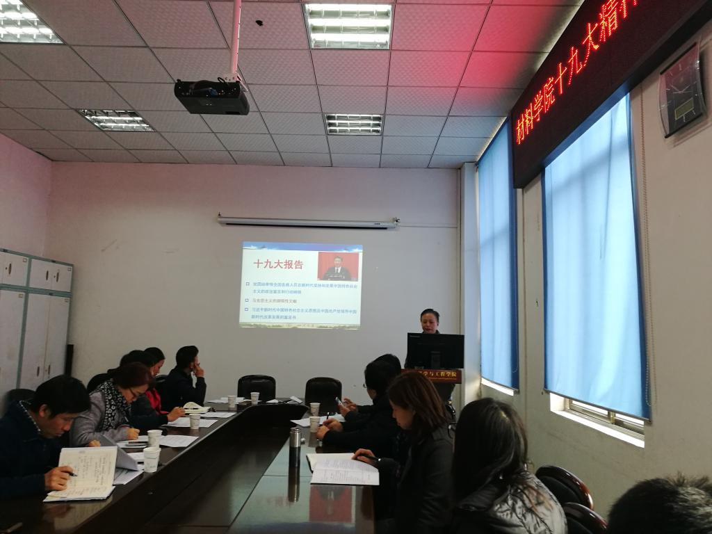 2017年11月29日下午14:30,材料科学与工程学院党委在学院会议室召开十九大精神宣讲支部书记培训会。学院全体党支部书记参加了会议。会议由学院党委书记尹光福教授主讲。