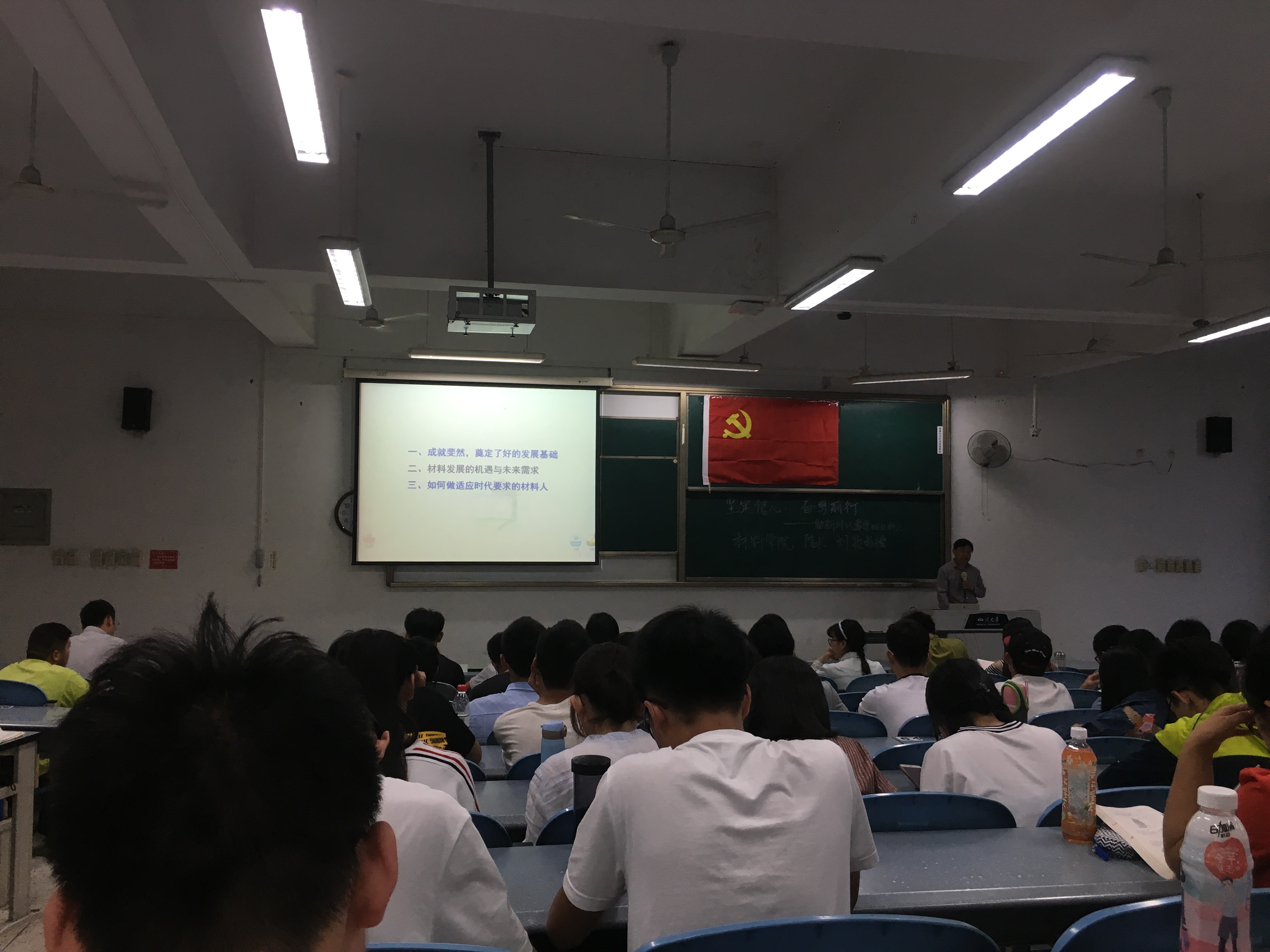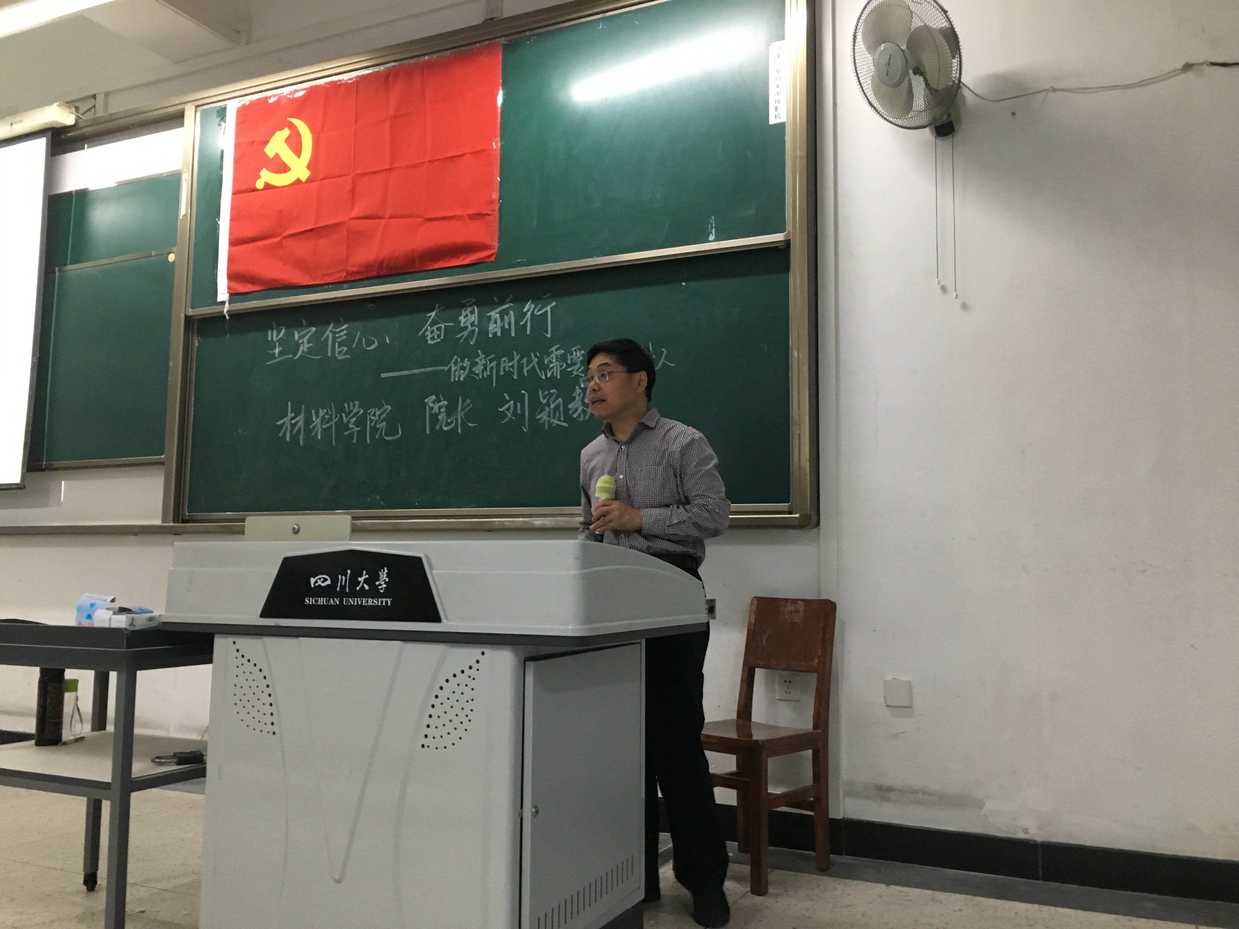 2018年4月26日,在江安校区综合楼C座206教室,材料科学与工程学院院长刘颖教授以“坚定信心,奋勇前行——做一个适应时代要求的材料人”为主题给材料学院2017级同学做了一次专题讲座。