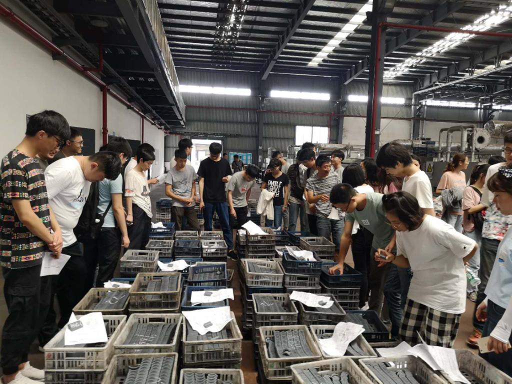 在听完校外专家课后,同学们分为两组,实地亲身参与产品生产。一组首先前往电子陶瓷部体验生产流程。在技术人员的带领下,进入半导体致冷器生产车间动手制作产品,并跟随工作人员学习检测方法。另一组前去机电装配车间进行动手实践,在工作人员的指导下,进行简单的机电元件装配工作。同学们开展了竞速比赛,整个过程快乐有趣而又充满意义。同学们既培养了自己的动手能力,又感受到了一线工人的辛苦,还加深了对于电子陶瓷制作工艺及机电元件结构的了解。