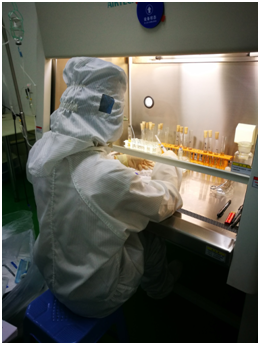 图1 初到公司的同学们 图2 同学在无菌检查室操作