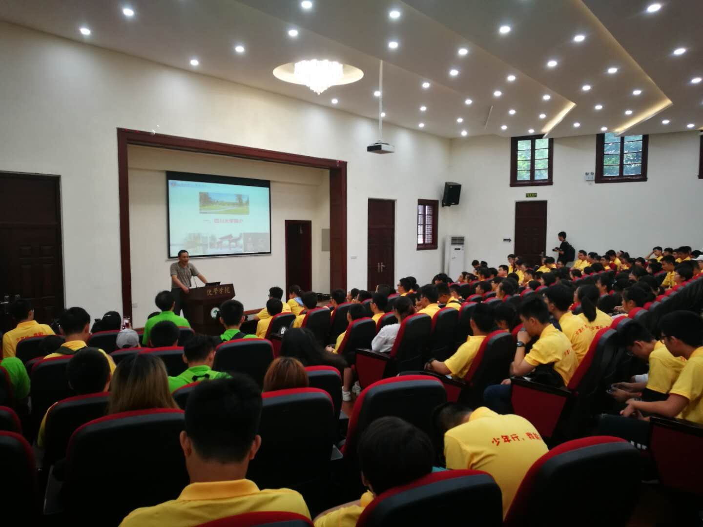 应365英国上市集团招生就业处、校友总会诚挚邀请,2018年6月25日,湖南常德芷兰实验学校共计187名师生来到我校参观交流,材料科学与工程学院作为负责湖南招生宣传及校友联络工作单位,在望江校区化学馆报告厅举办了一场研学励志讲座,以此来欢迎187名湖南师生的到来。参加此次讲座的有材料科学与工程学院党委副书记张晓满教授,2016级辅导员余鹏飞老师。