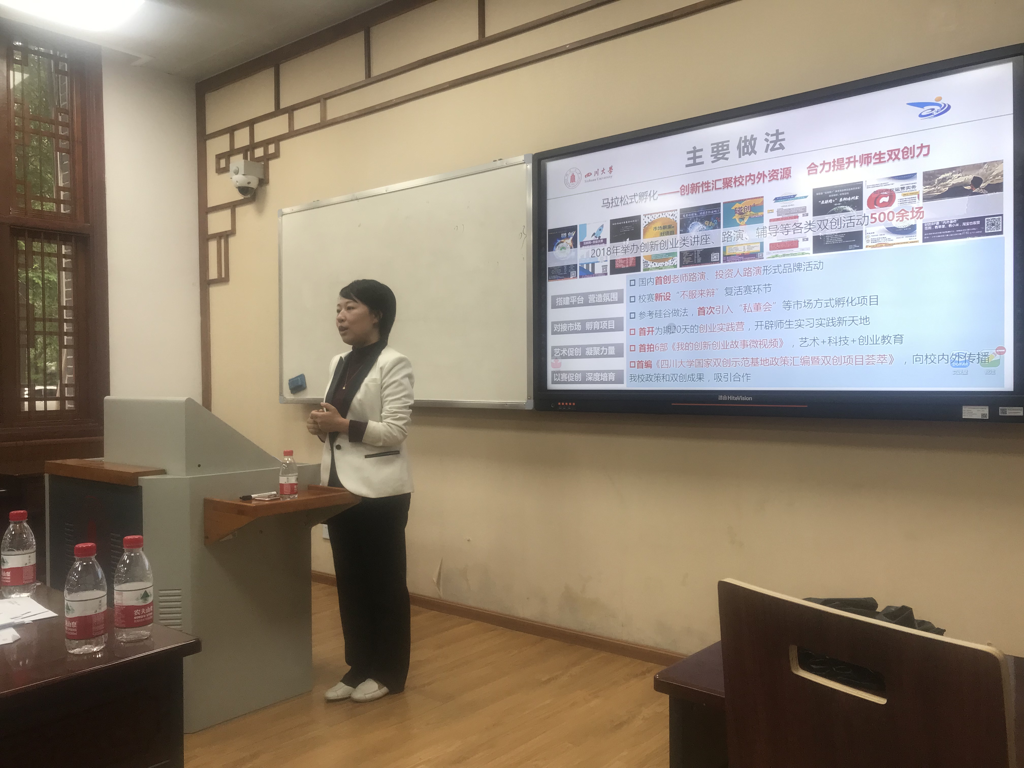 首先,林江莉副院长介绍了我院创新创业教育工作的基本情况,希望各位老师积极指导各类创新创业大赛,同时鼓励学生积极参赛,学院将对每个项目都给与大力支持.随后,学校教务处双创办主任吴迪副教授为学院师生全面解读了第五届 “互联网+”大学生创新创业大赛政策,并进行了现场互动。最后,与会师生针对准备参赛过程中可能会遇到的问题进行了深入讨论和交流,现场气氛热烈。