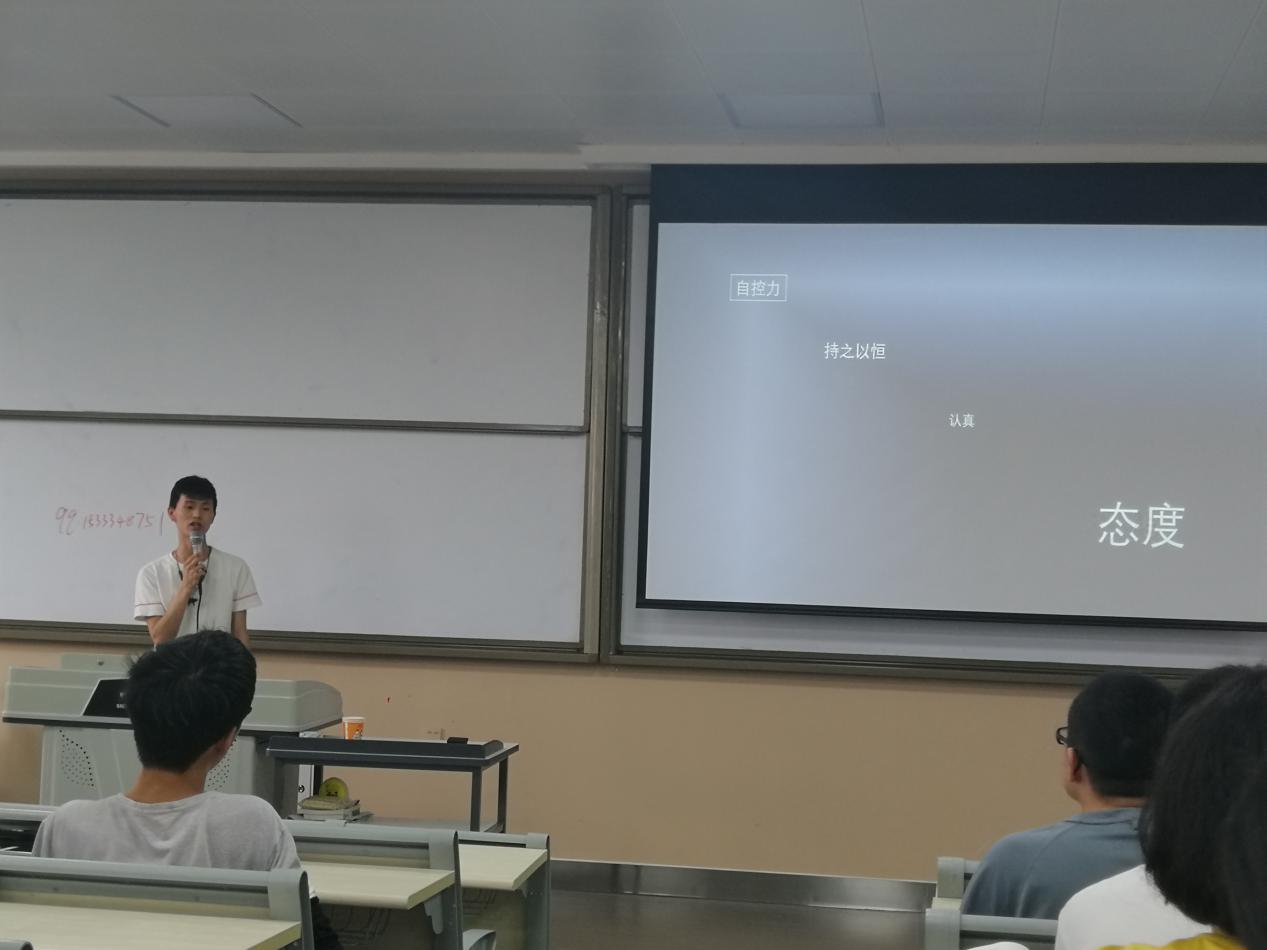 第四位为大家分享自己心得的是材物的肖熹学长,他为同学们讲解了考研复习各科的学习方法,尤其是强调了数学是重中之重,要多刷真题并结合书本内容进行复习;英语复习是一个长期积累过程,要注重每天抽时间学习;专业课和政治课尽量在初试前2两个月开始突击,避免因过早复习而遗忘。之后李祥学长为大家介绍了各科复习的一些参考资料,并说明同学们可以向上一届学长学姐借参考资料和学习笔记。最后为大家分享的是孙茜茜学姐,她给大家分享了自己的具体考研过程以及心态变化,提醒同学们在备考时要及时调整心态,同时也要注重身体锻炼,让自己在备考时处于最佳状态,避免因小失大。