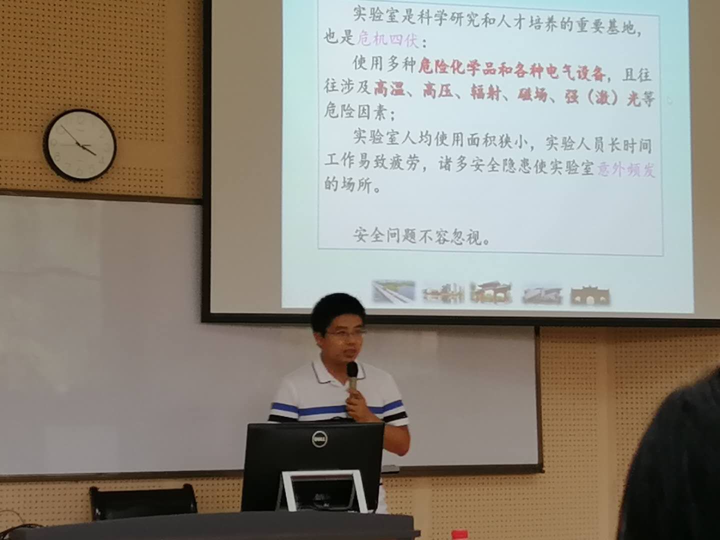 新学期伊始,学院领导高度重视实验室安全教育工作。为了提高新生实验室安全意识和安全素养。9月5日、9月6日,我院对新进校的300名本科生和100余名博士研究生进行了实验室安全专题讲座,讲座由王文武老师主讲。