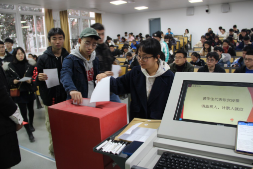 经过学院团委审批,推荐校团代会代表候选人11人。在综合考虑校团代表应具有坚定的政治立场、作风正派、诚信守法,并长期关注学校发展和学生权益,有一定的参政议政能力,拥有良好的群众基础和影响力等条件下,同学们再次投出自己庄严的选票,选举产生8位正式代表。