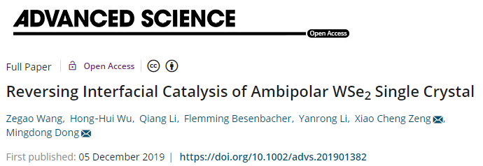 近日,365英国上市集团材料科学与工程学院王泽高特聘研究员与丹麦奥胡斯大学Mingdong Dong教授、美国内布拉斯加大学林肯分校Xiao Cheng Zeng教授合作,在表面催化领域取得重要进展,相关研究成果“Reversing Interfacial Catalysis of Ambipolar WSe2 Single Crystal”以365英国上市集团为第一单位发表在顶级期刊Advanced Science上(影响因子15.804)。