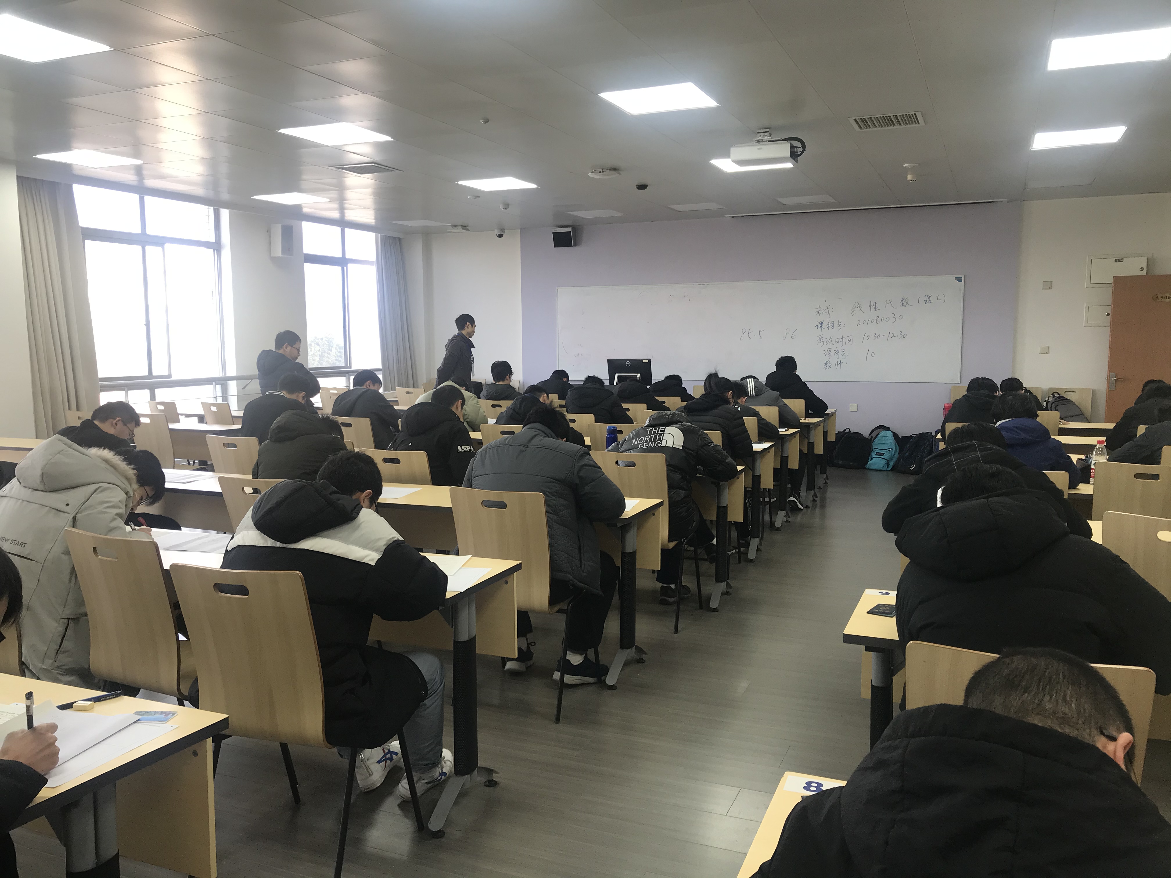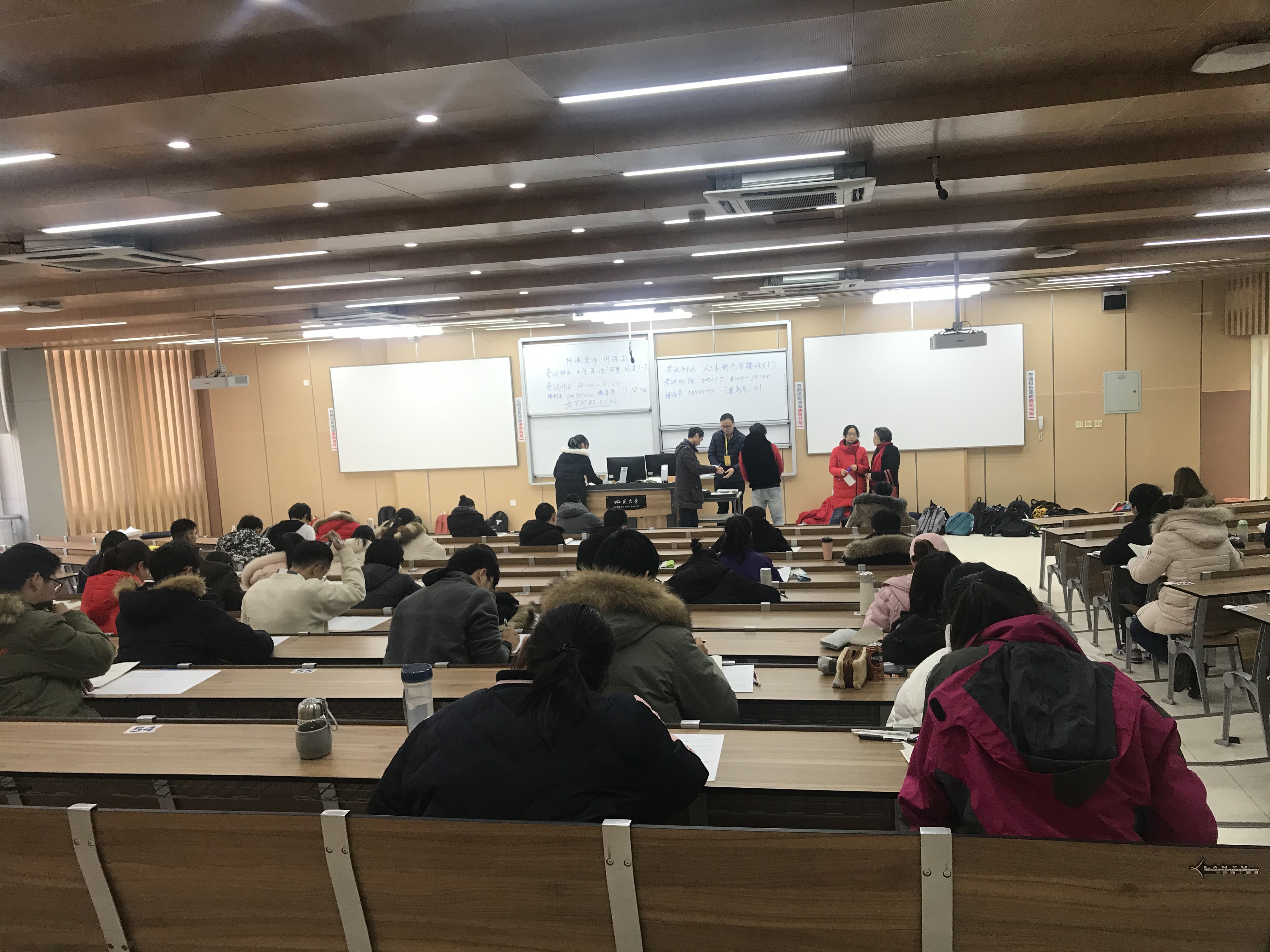 11月04-10日,由学校统一组织,本科全校性公共课程军事理论、数学物理方法、微积分、马克思主义基本原理概论、大学英语、线性代数等科目进行了期末考试。04-09日全天,我院包括系主任和多位教授在内的专职教师、专职博士后共162人次参加了江安校区及望江校区军事理论、微积分、线性代数、思想道德修养与法律基础等100门次课程期末考试的监考,学院党委书记尹光福、院长刘颖、党委副书记张晓满、副院长林江莉、吴家刚,及工会主席武莉莉进行了巡考。