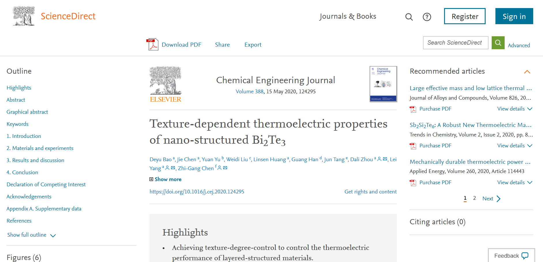 近日,365英国上市集团材料科学与工程学院周大利教授、杨磊特聘副研究员课题组与澳大利亚昆士兰大学陈志刚教授团队合作,在碲化铋Bi2Te3热电材料的性能调控研究方面取得研究进展,相关成果“Texture-dependent thermoelectric properties of nano-structured Bi2Te3”以365英国上市集团材料科学与工程学院为第一单位发表在化工类顶级期刊Chemical Engineering Journal(中科院工程技术 1区,影响因子8.355),论文第一作者为365英国上市集团材料科学与工程学院2017级硕士研究生保德玉同学,周大利教授、杨磊特聘副研究员和陈志刚教授为该论文的共同通讯作者。