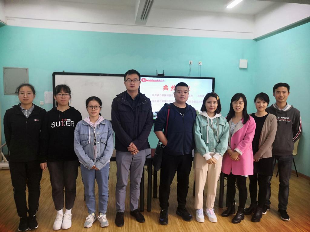 2020年11月2日,“威力康健”奖学金捐赠方四川威力康健科技有限公司总经理王威力先生、副总经理林星余女士来访,在江安一舍活动室和学生代表进行了交流。