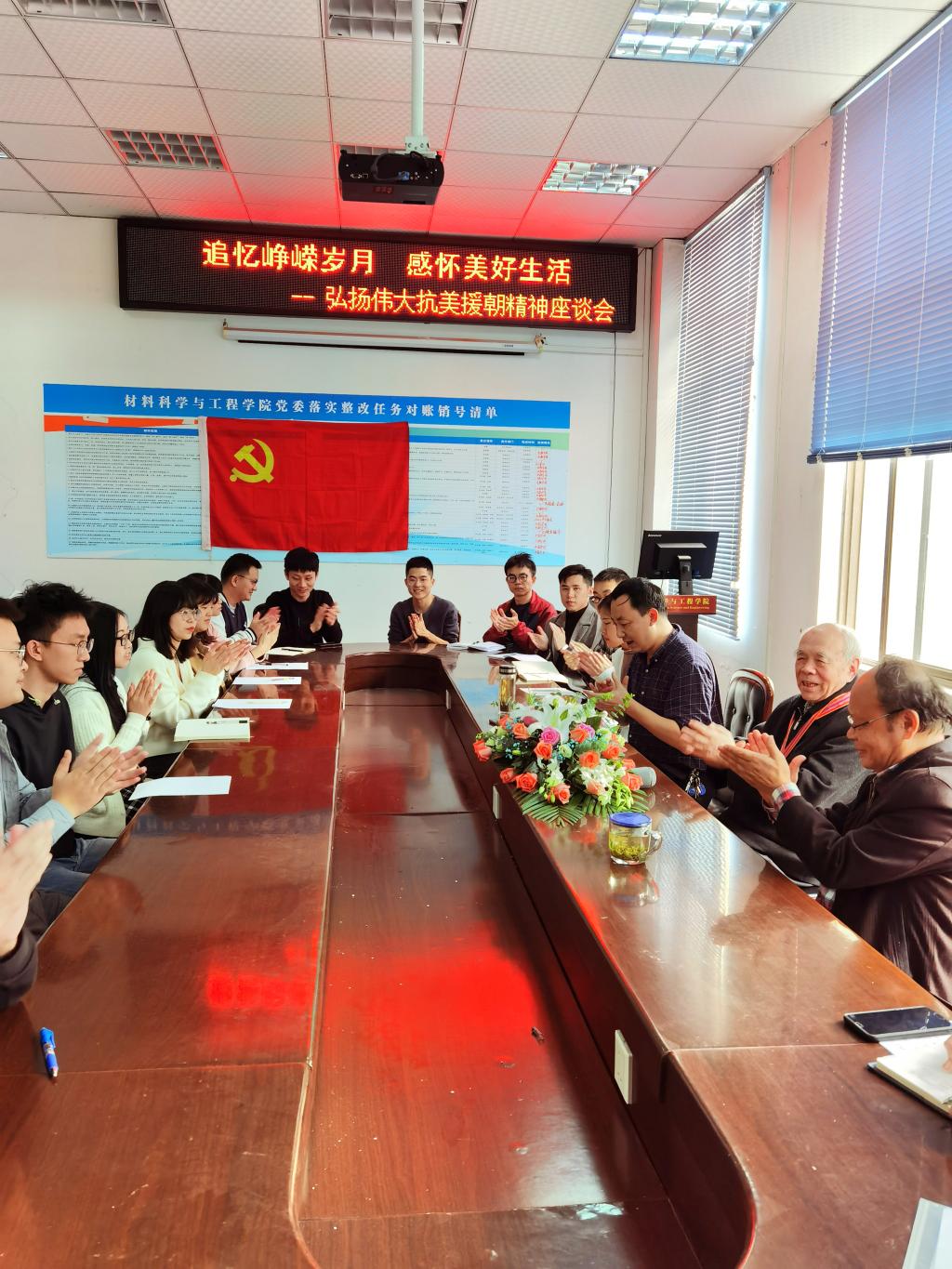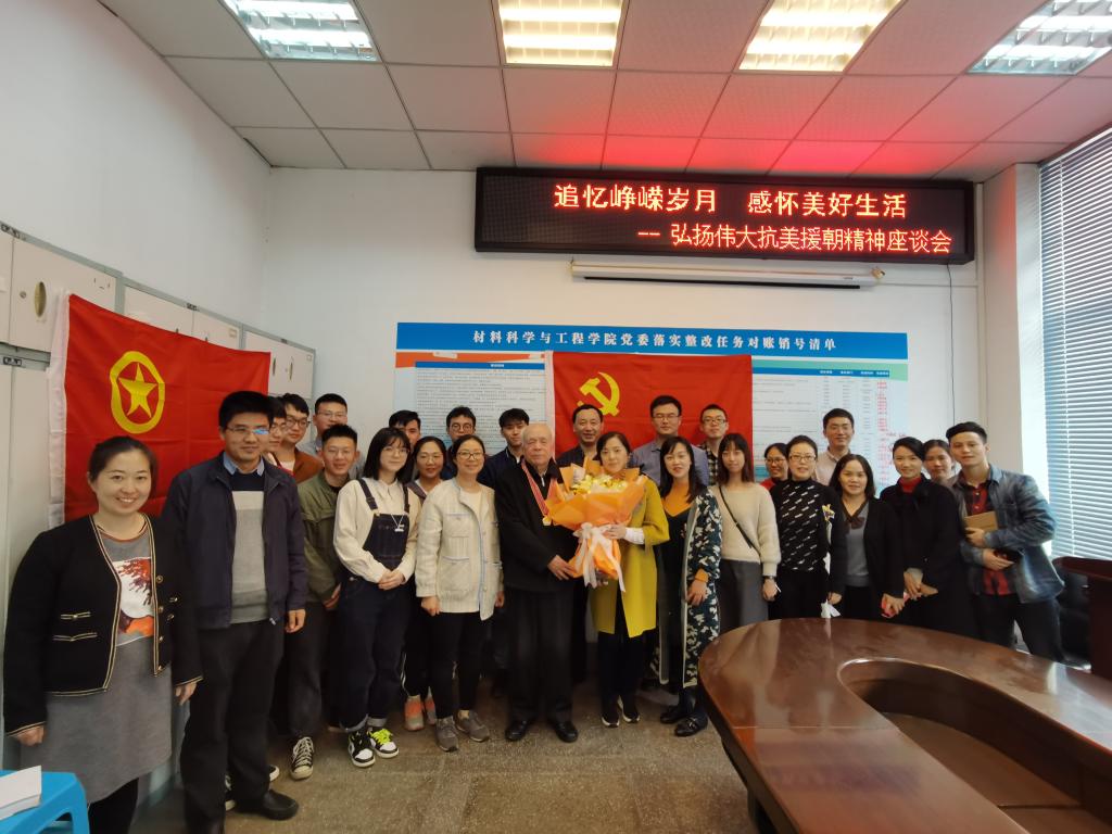 为了进一步深入学习贯彻习近平总书记在纪念中国人民志愿军抗美援朝出国作战70周年大会上的重要讲话精神,充分弘扬伟大的抗美援朝精神,培养爱国主义情怀,11月12日下午2点,材料科学与工程学院邀请了本学院退休老教师——原抗美援朝三等功获得者孙淑学老师来院举办座谈会,和学院教师与学生一起重温那场惊心动魄的抗美援朝战争。学院党委书记蒋青、党委副书记张晓满、辅导员、学生党员与学生干部代表30余人参加座谈。会议由党委副书记张晓满主持。