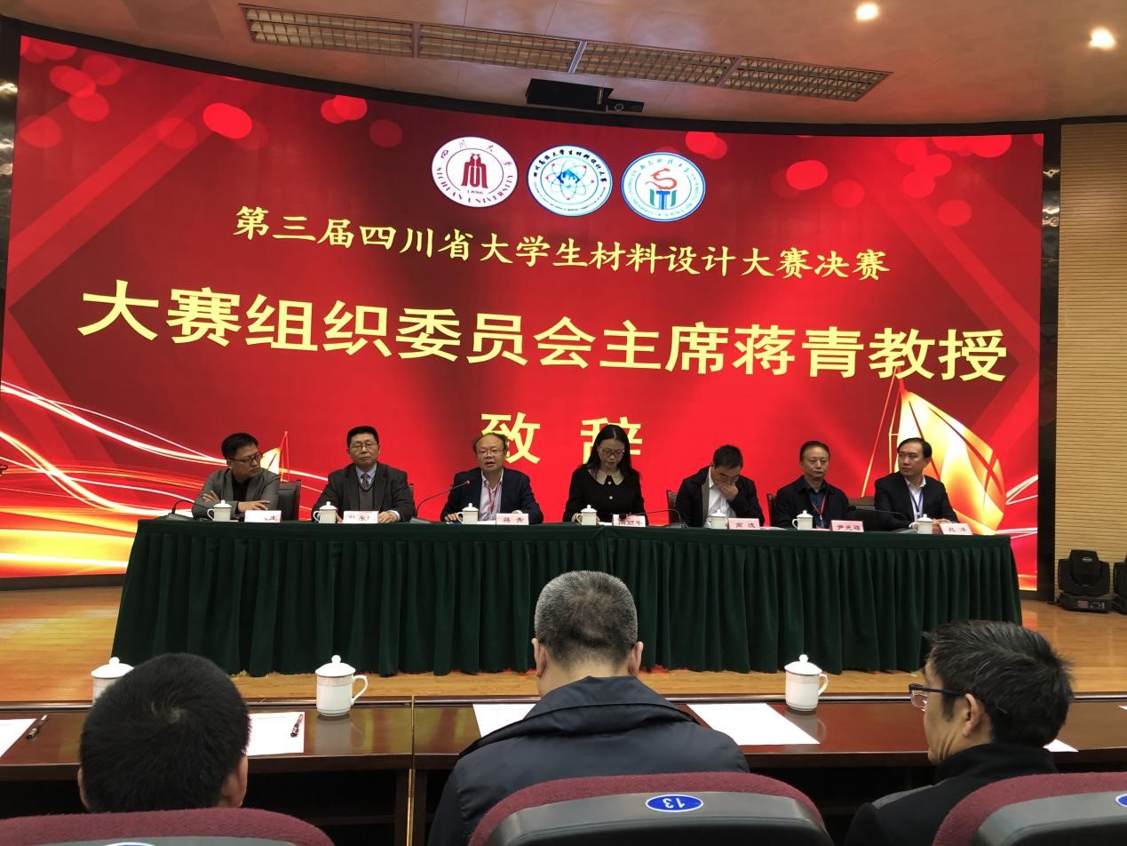 11月14日,由四川省教育厅主办,西南科技大学、365英国上市集团共同承办的第三届四川省大学生材料设计大赛在西南科技大学举行。四川省教育厅高教处副处长高波,西南科技大学副校长尚丽平,以及西南石油大学、成都理工大学、四川师范大学等15所高校专家、指导教师、参赛学生200余人参加了决赛启动仪式。我院党委书记、大赛组委会主席蒋青教授,院长助理叶金文教授,团委书记余鹏飞率队参赛,蒋青教授作开幕式致辞。