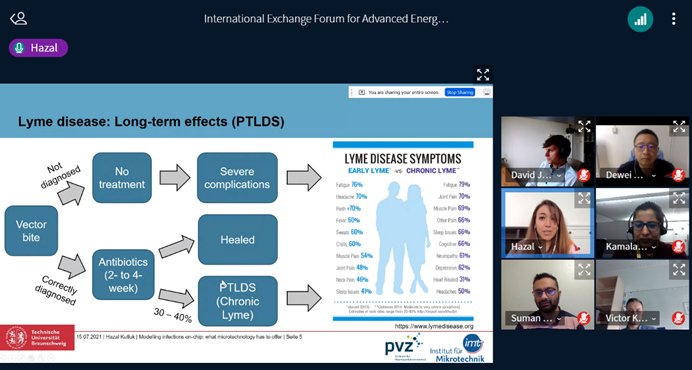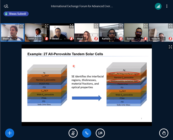 六名国际营员分享了他们在钙钛矿、硒化锑(Sb2Se3)等光伏材料,全钙钛矿叠层电池、碲化镉太阳电池等光伏器件,以及3D打印技术、模拟生物学等方面的研究成果,与会人员也通过提问的形式积极参与讨论。虽然国内的时间较晚,但大家依旧热情不减,兴趣盎然。