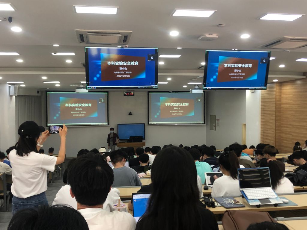 2022年3月18日,材料科学与工程学院组织开展了新学期本科实验安全教育与培训,学院2019级本科生共计180余人全部参与培训。本次培训由王文武和张小山两位老师主讲。