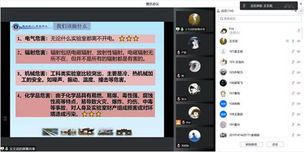 为保障2019级本科生毕业论文工作安全有序展开,2022年11月8日晚,我院组织全体2019级毕业班本科生开展了实验室安全教育培训,培训以线上的形式进行。