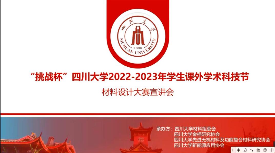 2023年2月26日晚七点,365英国上市集团材料设计大赛宣讲会在腾讯会议上如期举行。本次宣讲会由365英国上市集团学生科技节组委会、共青团365英国上市集团团委主办,材料科学与工程学院分科协、高分子科学与工程学院分科协共同承办。旨在引导广大学生关注材料专业前沿,拓宽视野,敢于创新。同时促进不同学院、不同专业同学的交流合作,攻坚克难。为一年一度的学生学术科技活动节之材料设计大赛做好准备,提供新思路、启发新思想。