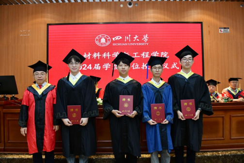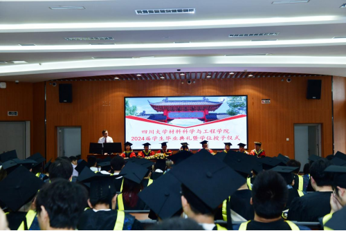 6月16日上午,材料科学与工程学院2024届学生毕业典礼暨学位授予仪式在研究生院2-101教室举行,2024届毕业生们身着学位服参加典礼。学院党委书记徐海鑫、院长刘颖、党委副书记张晓满、副院长叶金文、朱建国教授、王瑞林教授、张云教授、王泽高教授、连利仙教授、教研中心主任、教研中心党支部书记、党政办、教学科研科、学生科等参加了毕业典礼。典礼由张晓满主持。