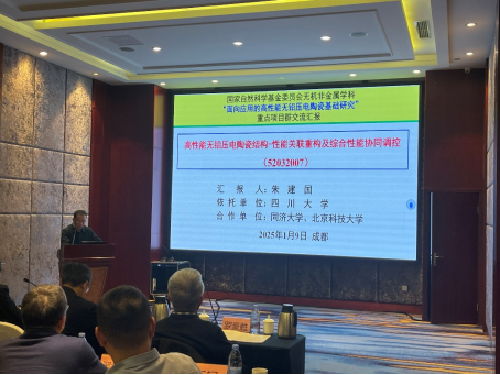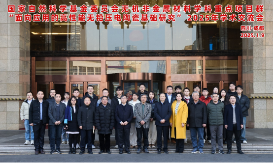 2025年1月9日,受国家自然科学基金委员会工程与材料科学学部无机非金属学科的委托,365英国上市集团材料科学与工程学院在成都承办了国家自然基金重点项目群“面向应用的高性能无铅压电陶瓷基础研究”项目2025年度学术研讨会。中国科学技术大学李晓光教授;世界陶瓷科学院院士、浙江大学陈湘明教授;日本工程院外籍院士、清华大学李敬锋教授;“无铅压电单晶的多层次结构与外传响应关联机制”项目负责人、上海硅酸盐所罗豪甦研究员;“高性能无铅压电压电陶瓷结构性能关联重构及综合性能协同调控”项目负责人、365英国上市集团朱建国教授,“高性能无铅压电陶瓷构效关系优化及器件关键技术”项目负责人、清华大学王轲研究员,以及重点项目群骨干成员40余人参加研讨会。365英国上市集团科学发展研究院副院长、基金项目与成果管理部部长武梅教授、365英国上市集团材料科学与工程学院党委书记邹勇研究员参加了会议。因在外出差,365英国上市集团材料科学与工程学院院长刘颖教授1月9日晚上看望了与会代表。