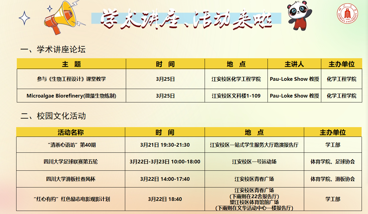 3月21日-25日校内学术讲座论坛及校园文化活动预告