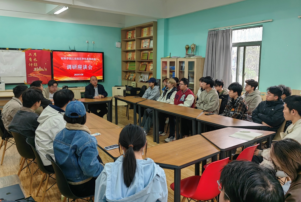 3月28日,材料学院党委书记邹勇代表院领导班子,到江安校区教学一线听课,前往科研实验室调研,并看望慰问江安校区同学,了解他们的学习、工作和生活情况。学院学生工作相关老师陪同调研。