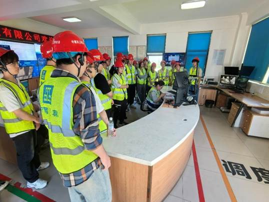 首先,企业讲解员引导同学们参观了公司的智能控制中心。该中心集成了模块化监控、智能检验、自动识别等先进管理平台,实现了对原料进场、运输、装卸、取样、检验全过程的智能调度与实时监控。通过现场讲解和操作演示,同学们对混凝土制备过程中的质量控制、智能管理系统的实际应用有了直观而具体的认知,深刻体会到信息化技术在材料制造行业中的重要作用。
