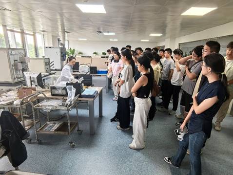 实习过程中,同学们分为两组先后参观了公司材料分析仪器与化学分析实验室。参观材料分析仪器期间,公司实验室安全专业管理人员老师分别为同学们介绍了扫描电镜、透射电镜、激光导热仪等表征设备。同学们积极提问互动,结合《材料科学与基础》与老师讨论透射电镜、3D打印的相关技术原理。