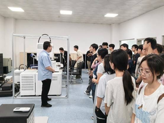 参观化学分析实验室期间,公司实验人员张老师为热情同学们讲解常见的质谱仪、原子吸收光谱仪的工作原理以及仪器构造,从生产的角度,让同学们了解到各种性能分析方法和仪器的使用规范。同学积极提问相关问题,拓展了对物质成分分析的认识。