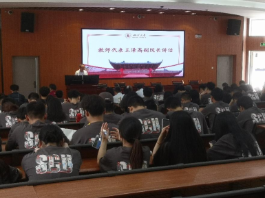 王泽高副院长作为教师代表发言,他希望同学们从规划人生、独立思考、自信专注三个方面不断提升自己的综合素质,能够担负起新一代材料人的使命。热情洋溢的讲话和充满智慧与温情的分享为同学们今后的学习生活提供了有益的指导。