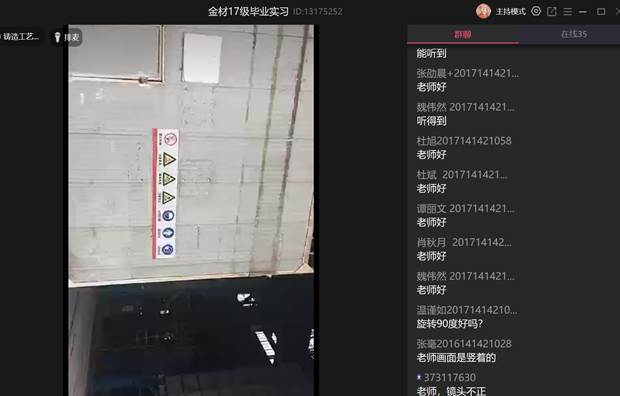 在每天的“云实习”中,老师首先线上讲授实际生产中的技术内容和各项要求、注意事项,而后老师运用手机直播带领同学们实地参观工厂的各项装备和工艺现场,虽然不能亲身实地地观看工厂中的各种设备和工艺,但是老师们用手机非常细致的拍摄各种仪器和设备,并耐心的进行讲解,同学们获益匪浅。