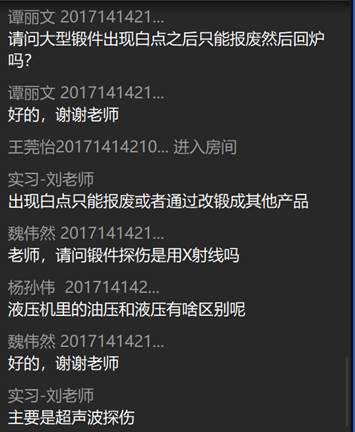 在这次线上“云实习”中,老师讲解地周到细致,带动起同学们的热情和好奇心,同学们非常积极地发言提问,老师对同学的问题一一进行解答,并且老师还组织大家对专业知识进行了探讨,大家的热情和认真相互感染和传播,同学们都收获了非常多的实践知识。