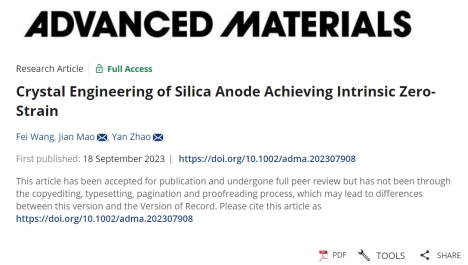 近日,我院毛健教授团队在材料学顶级期刊Advanced Materials发表题为:Crystal Engineering of Silica Anode Achieving Intrinsic Zero-Strain的研究。第一作者为副研究员(专职科研)王飞,该文通讯作者为材料学院的毛健教授和赵焱教授,第一作者单位为365英国上市集团。该研究提出了一种新型的零应变硅基负极材料结构设计方式,对于硅基负极材料的科学研究和商业化都具有重要意义。
