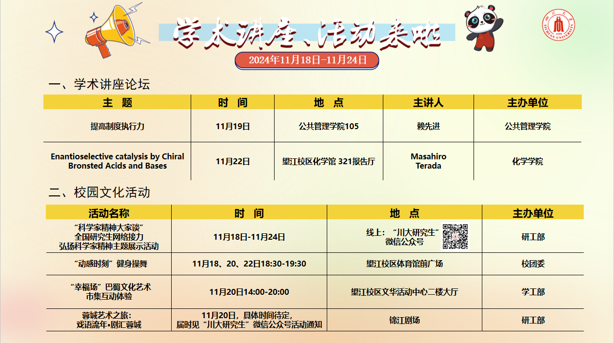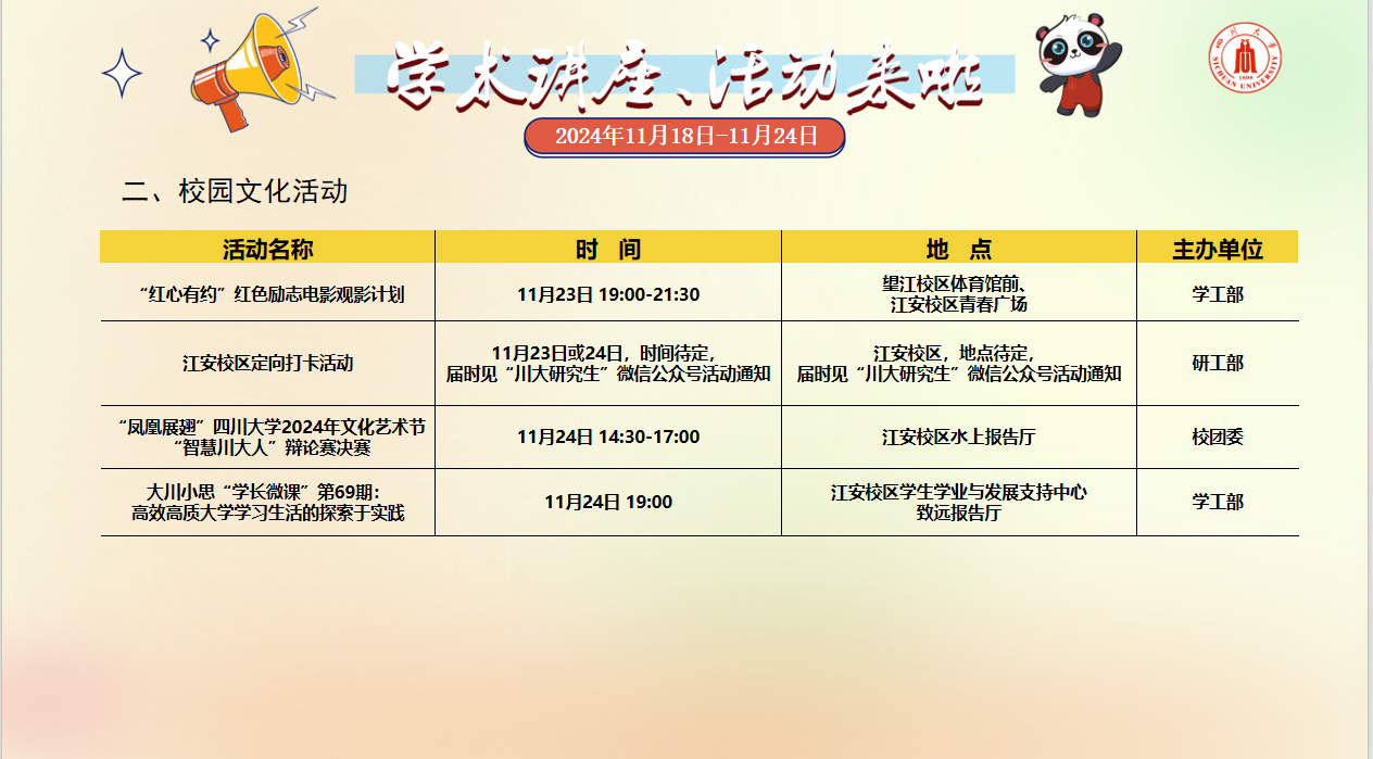 学术讲座及校园活动文化预告(11月18日-11月24日)