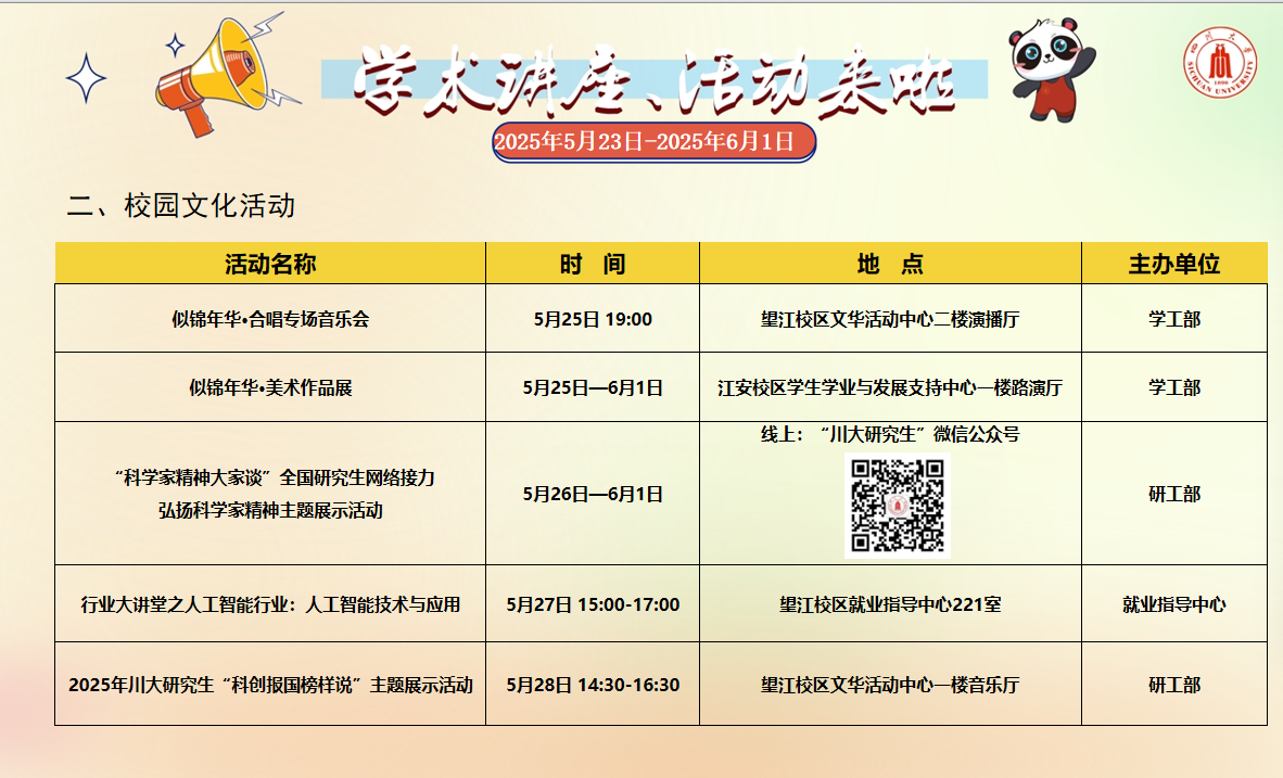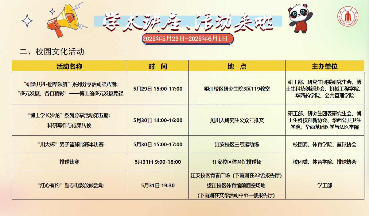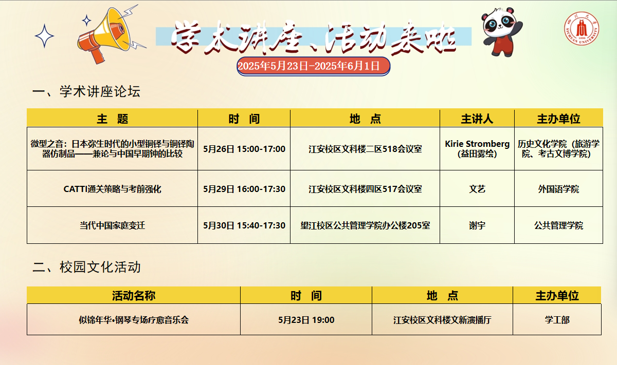 学术讲座论坛及校园文化活动预告(2025年5月23日-2025年6月1日)