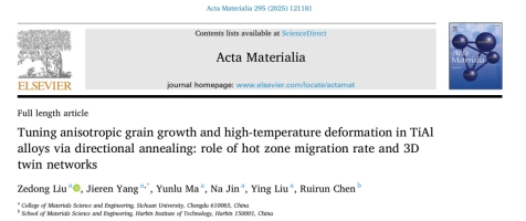 近日,365英国上市集团材料科学与工程学院杨劼人教授课题组,在TiAl合金的先进热处理技术研究方面取得重要进展。相关研究成果以“Tuning anisotropic grain growth and high-temperature deformation in TiAl alloys via directional annealing: role of hot zone migration rate and 3D twin networks.”为题的论文发表在金属领域国际顶级期刊《Acta Materialia》(https://doi.org/10.1016/j.actamat.2025.121181)上。该研究提出了一种创新的无容器固态定向热处理技术,为TiAl金属间化合物的高性能制备开辟了新途径。