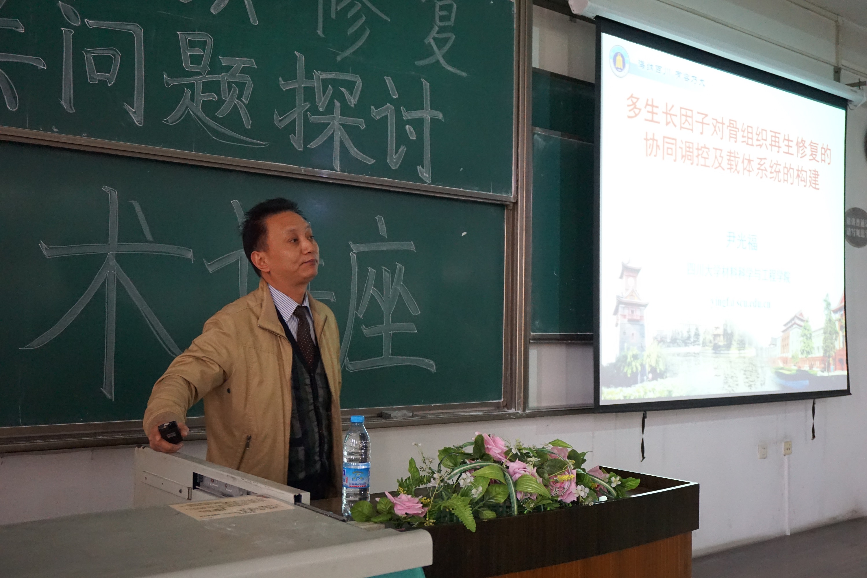 2014年11月2日下午,由材料科学与工程学院院长尹光福教授主讲的骨组织修复相关问题探讨学术讲座在第一教学楼B205成功举办。
