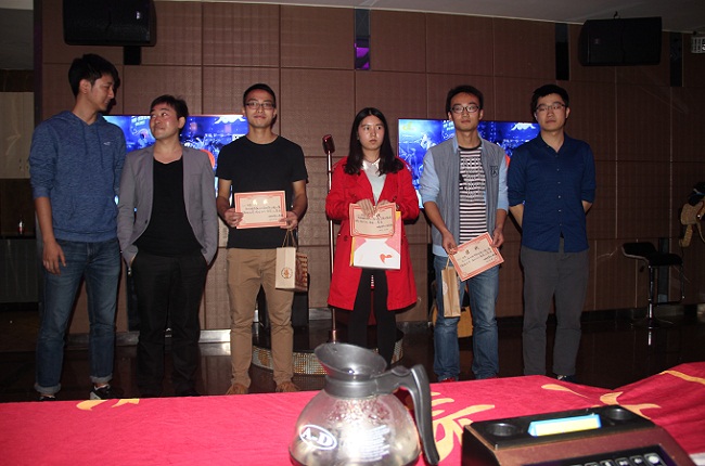 比赛就这样在大家的欢呼声中开始了,首先发声的是我们的李旬同学,一曲《依然爱你》唱出了多少与爱有关的故事,优美的旋律搭配他那充满磁性的嗓音,婉转而动人,颇有音乐才子力宏的味道。经过三轮的角逐之后,我们的萌妹子张鸽同学以一首《他说》结束了本次K歌大赛,最终经过大家的投票,张鸽同学获得18票的票数,拿下了本次K歌大赛的冠军,可喜可贺,尤记得她的那首《是否》仿佛把人带进一片音乐的汪洋,一波未平,一波又起,悠扬婉转,优美动人。我们的吉他小王子高旭以一票之差获得了亚军,黄锐杰同学用优美的歌声和动人的演唱获得了本次K歌大赛的季军,我们同样要为那些参与到本次K歌大赛的其他选手和工作人员鼓掌,他们也是最棒的!