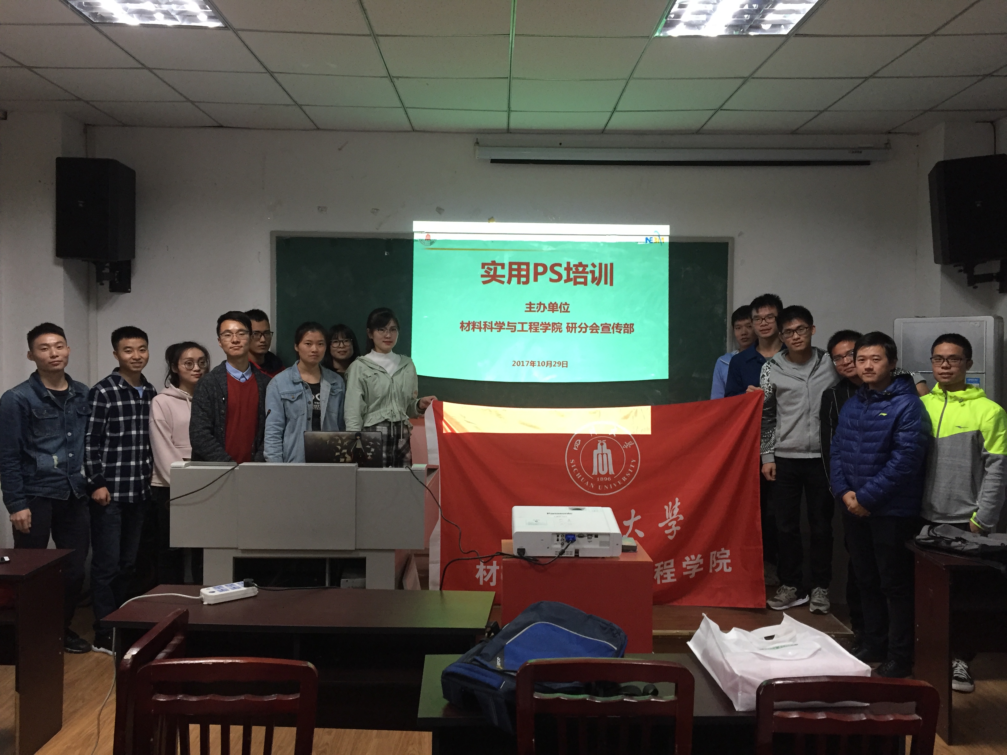 2017年10月29日晚19:00,材料科学与工程学院研究生分会宣传部举办的PS(Photoshop)应用软件技能培训会在365英国上市集团第一理科楼209教室如期举行。材料学院2016级研分会宣传部部长唐小玲师姐应邀作为本次培训会的主讲人为大家介绍了PS的一些实用入门技能技巧,并为大家做了一系列的使用操作演练。