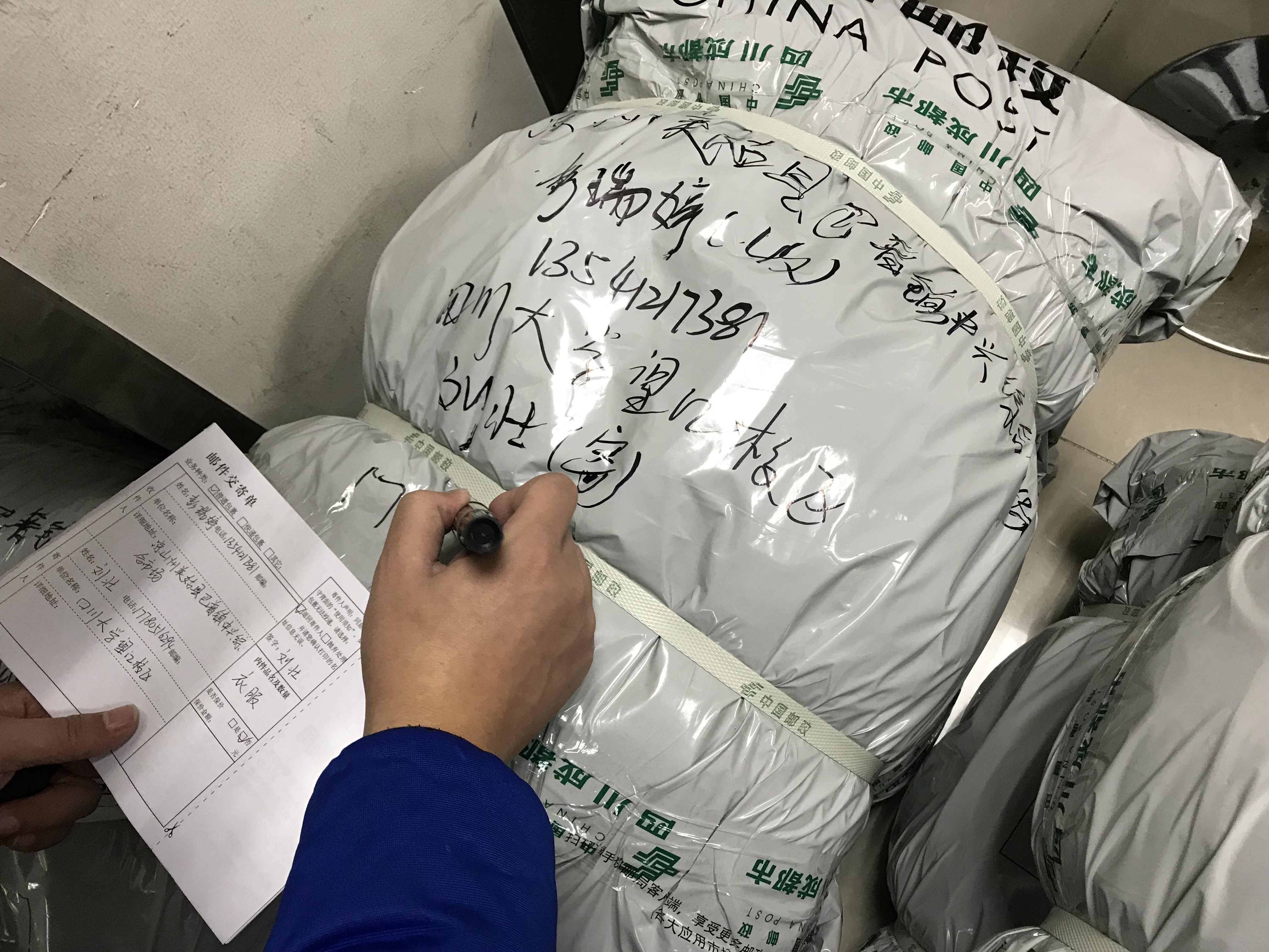 12月13日下午,按照中国邮政寄送包裹的要求,志愿者们将整理好的物资封装、称重、写邮寄地址等,本次活动委托中国邮政将爱心物资寄送至四川省凉山州美姑县巴普镇,由当地的支教团团长彭瑞婷同学收件后分发给有需要的学生。