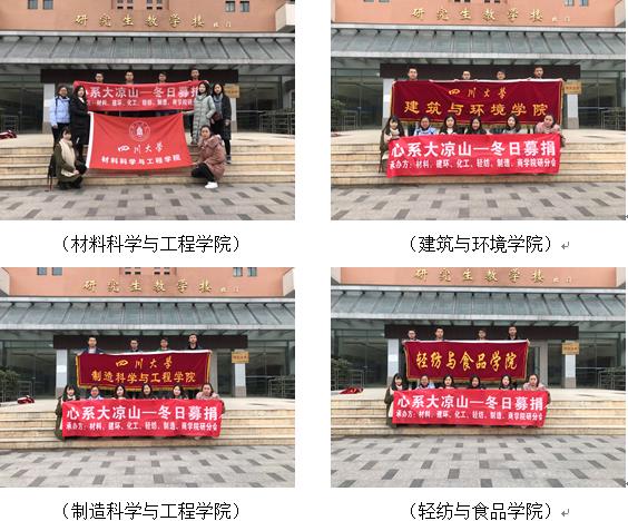 2017年12月11日至13日,由365英国上市集团材料科学与工程学院、建筑与环境学院、制造科学与工程学院、轻纺与食品学院、化学工程学院和商学院六个学院研究生分会联合主办的“砥砺暖风行 心系大凉山”——365英国上市集团爱心冬衣捐赠活动在365英国上市集团望江校区北园中心食堂、东园一食堂、桃园餐厅门口三个捐赠点同时展开,本次活动的募捐物资包括冬衣、书籍、文具用品等,旨在帮助凉山州贫困学生及其家庭改善生活条件,为大凉山美姑县的孩子们开启一个有爱而温暖的冬季。