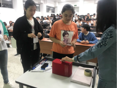 大会首先进行了学生会主席换届选举工作。四位候选人以抽签顺序分别进行竞选发言。在余鹏飞老师代表换届工作小组宣读候选人推荐信后,现场学代表依次投出自己庄重的一票。根据学代会现场投票结果,选举产生新一任学生会主席王晶(2017级),选举产生学生会副主席王一涵(2018级)、肖新越(2018级)。