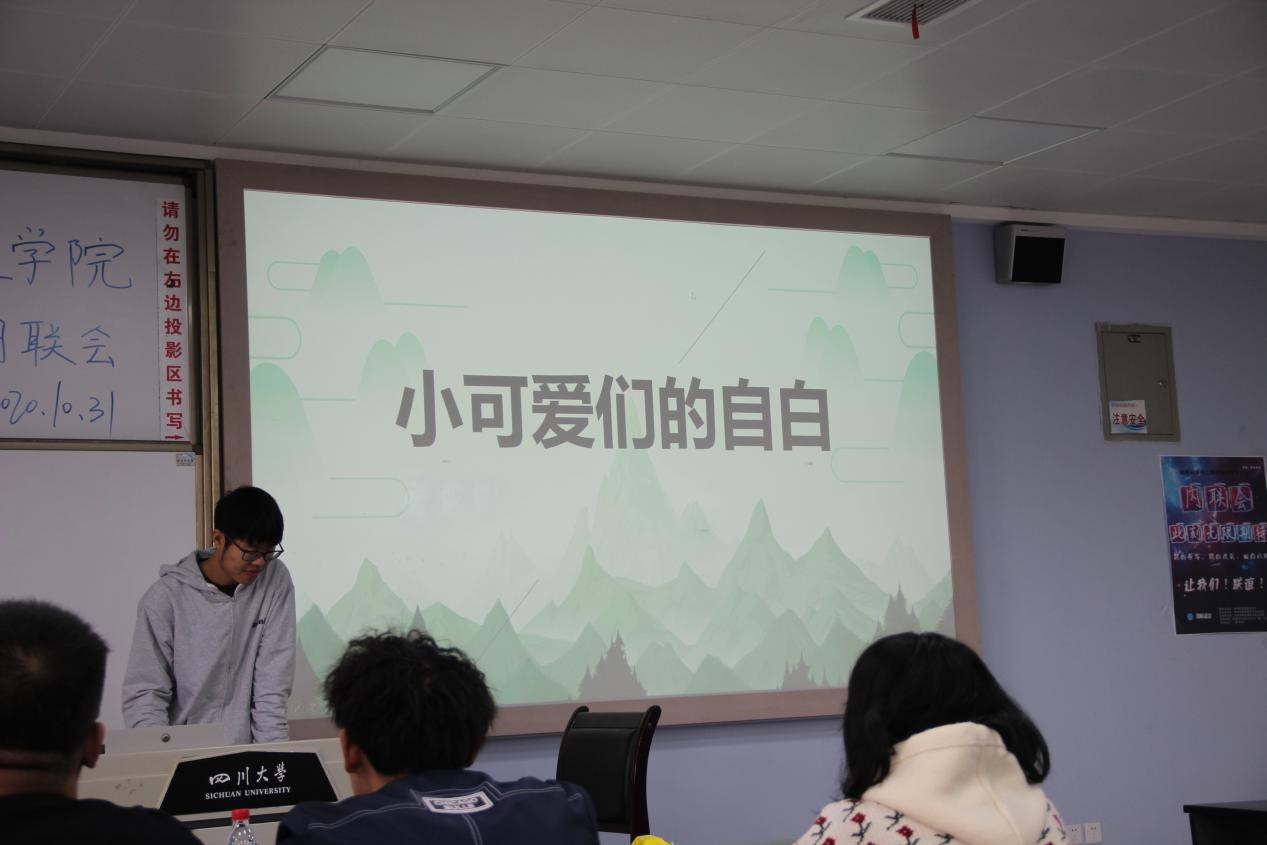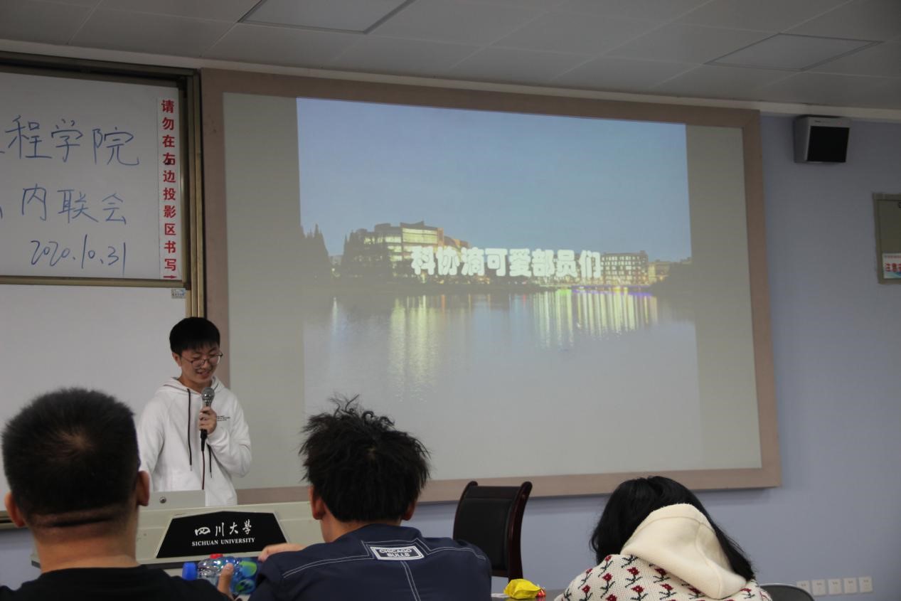 2020年10月31日下午,材料科学与工程学院团委学生会内联会于一教b407隆重举行。参与本次活动的有院团委副书记肖闳畅﹑学生会执行主席马子涵﹑各部门部长副部长和2020级全体学生会干事。本次内联会的活动流程分为:学生会代表致辞、部门干事介绍、部门节目展示、中场游戏以及压轴游戏。