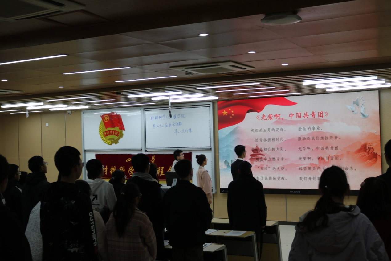 11月29日下午13时45分,材料学院全体团校学员在会务引导之下准时﹑有序的进入会场。14时整,全体人员起立并奏唱团歌,团歌唱毕,全体人员落座,团校第二次授课正式开始。